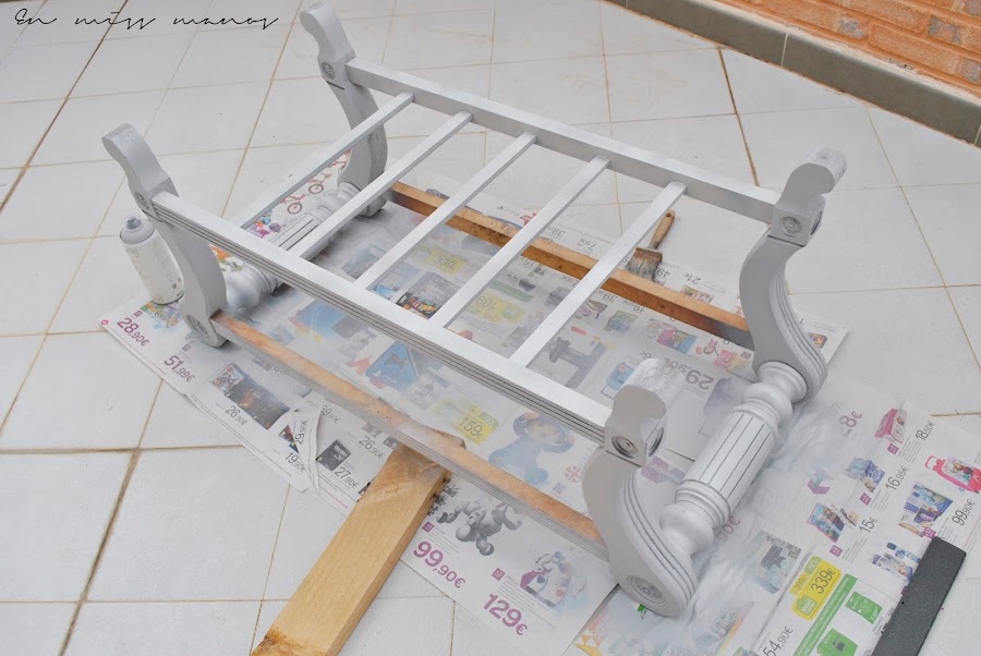 La estructura la pinté con spray de chalk paint de Leroy Merlín, que encontré de oferta.