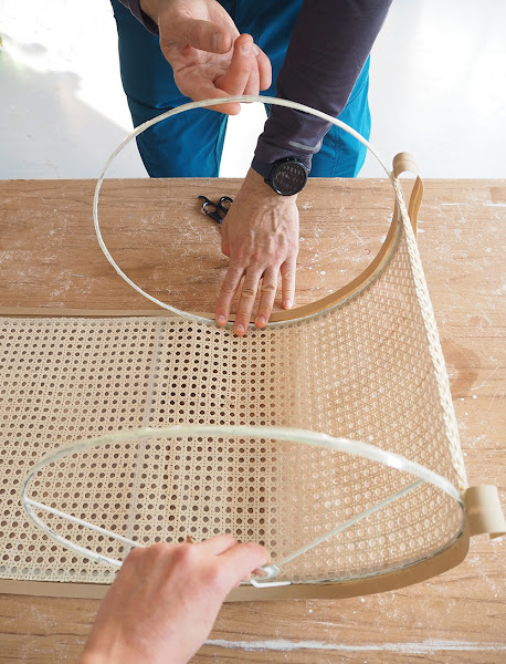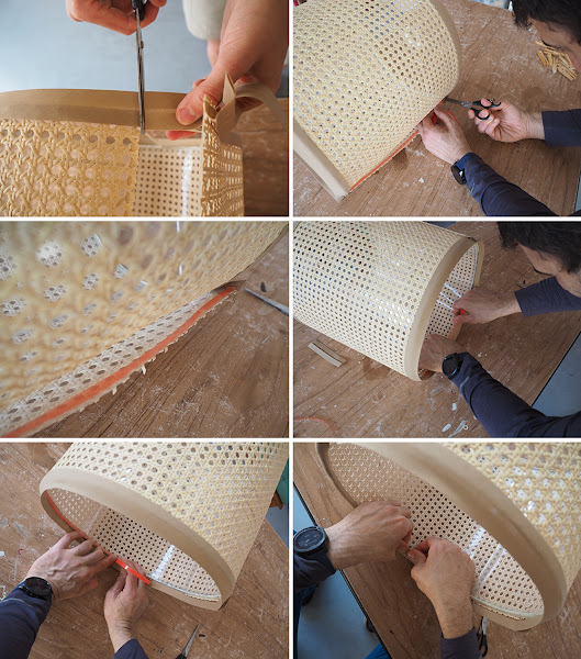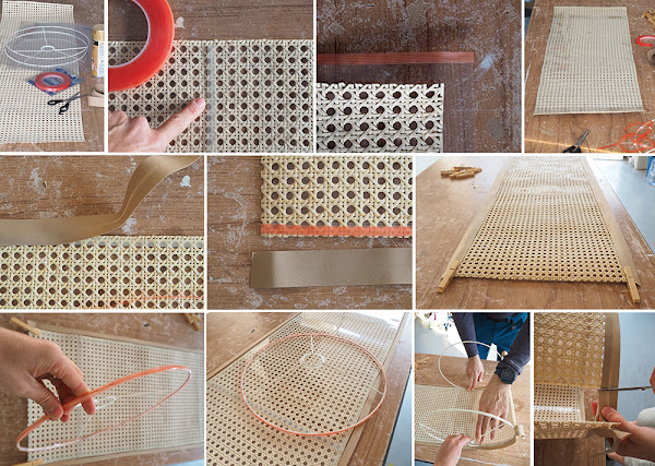 Medir las dimensiones de la lampara original. Con esas medidas, sabréis que cantidad de rejilla cannage y acetato tenéis que comprar.