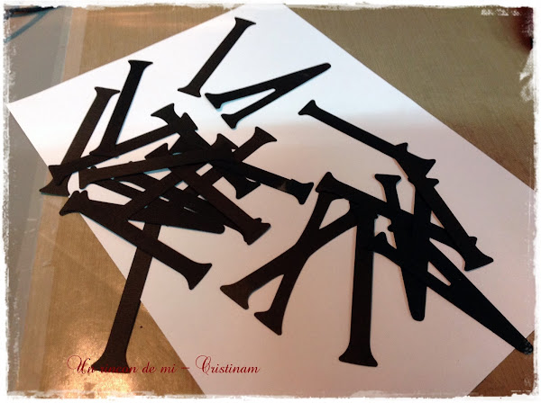 Luego he cortado los números en vinilo negro,,, realmente primero los he cortado en cartulina negra , pero cuando sólo me quedaban dos números por cortar se me terminó así que al final tuve que recurrir al vinilo.