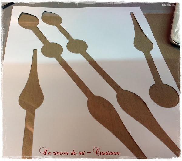 Son de papel, las he cortado dos veces, luego las he pegado y decorado con la técnica del falso metal.
