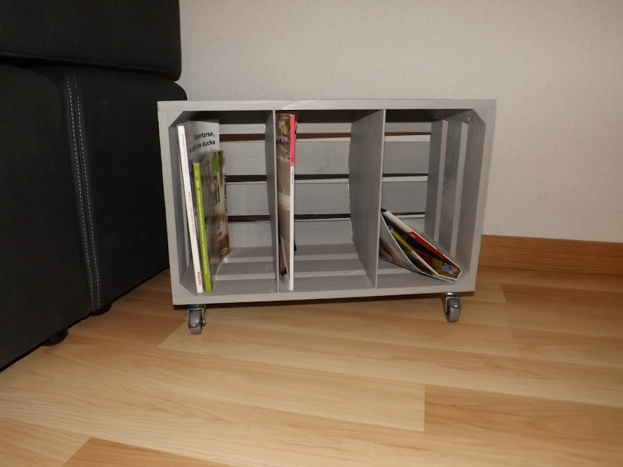 Como os dije, hoy os traigo un DIY de decoración muy facilito: esta caja transformada en mesita auxiliar y revistero a la vez.