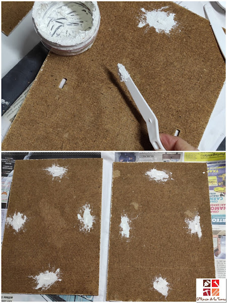 Lo primero que hice fue tapar los agujeros con pasta y una vez secas, lijar y pintar con pintura a la tiza dejando los bordes de la tabla sin pintar, del color del tablero.
