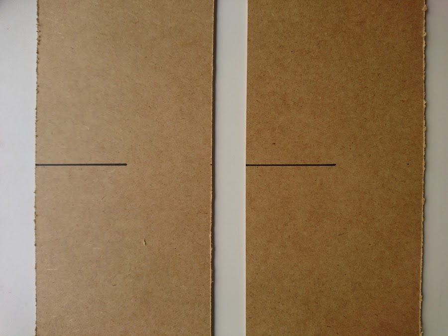 Pasamos a serrar las piezas, tomaroslo con calma para ir lo más recto posible. Cuando estén ambas piezas cortadas, buscamos la mitad de cada tabla y lo marcamos con una línea de 0.5 cm de ancho, de la que serraremos únicamente la mitad.