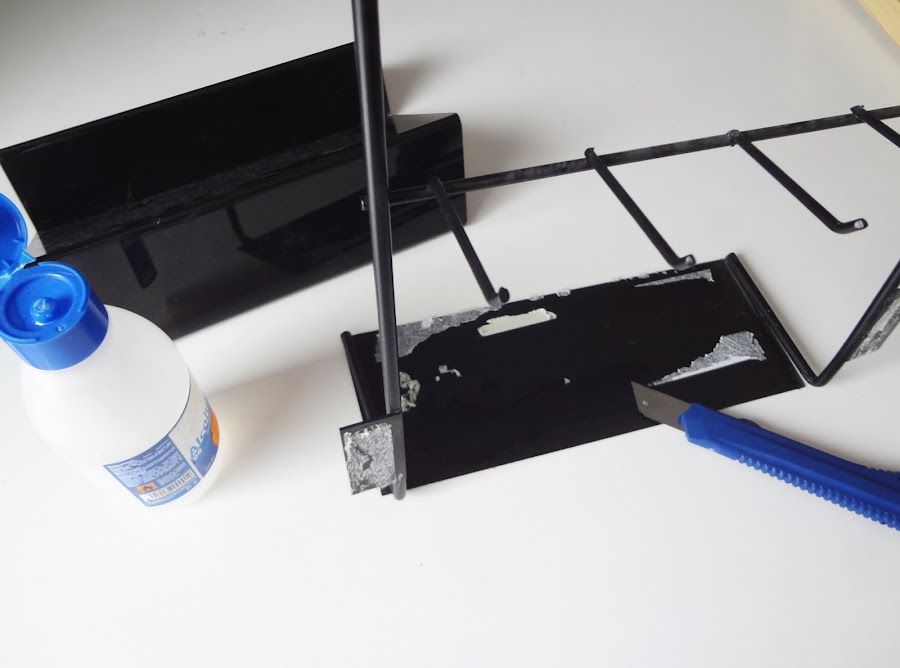 Lo cogí más que nada porque era de metal y no de plástico como la base, así que como tenía pegamento en unos cuantos sitios lo único que hice fue quitar la base y los restos de pegamente quitarlos con alcohol y cuchilla.