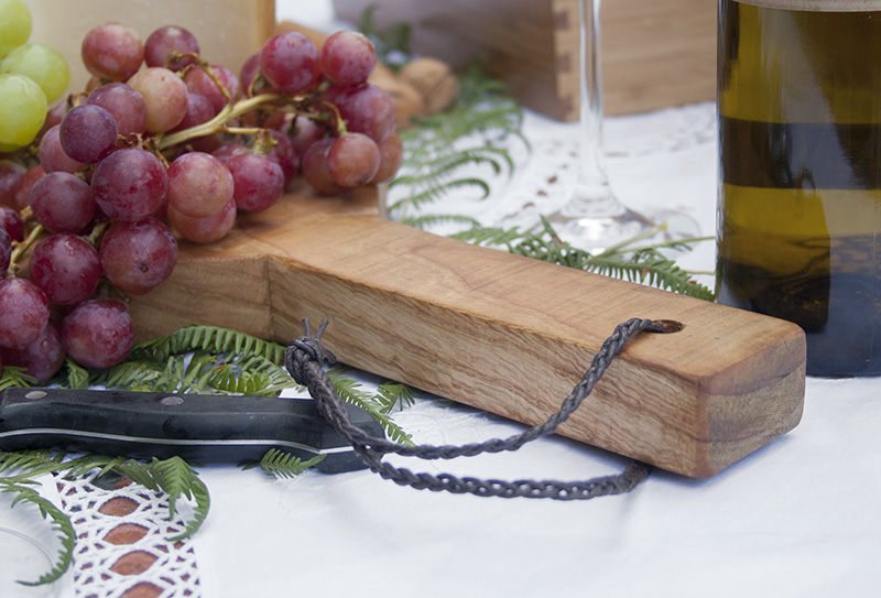 Para acabar protegemos la madera con cera y un paño de algodón, y rematamos la tabla con una trenza de cordón de cuero. Para usarla con comida conviene dejarla al menos un día para que la cera penetre bien en la madera, y listo ¡Ya podemos estrenarla!