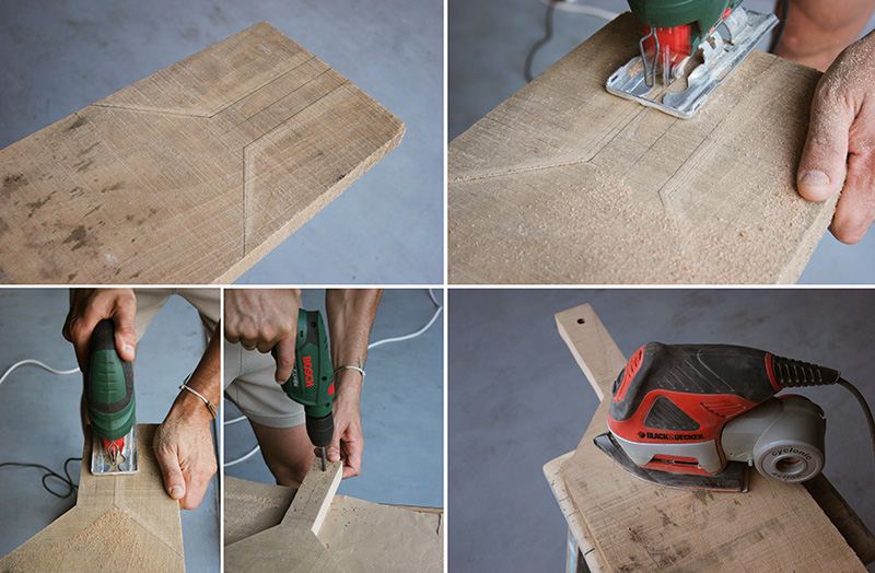 Herramientas: Caladora, taladro, lijadora, lápiz y regla