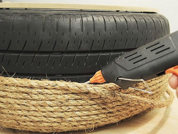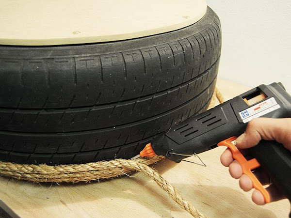 Hacerlo es muy fácil, tan sólo requiere algo de dificultad cortar la parte de la pieza de DM que servirá para formar el asiento. Necesitaremos una buena sierra que haga un corte limpio, y en cosa de un par de horas tienes tu puf disponible para disfrutar de las noches de verano fuera o dentro de casa. El resto del proceso es igual que el diy anterior, sólo que esta vez empezaremos pegando la cuerda de sisal en el centro del asiento, y desde ahí bajamos para cubrir todo el neumático. Una vez tengamos ya cubierto todo el neumático, con cinta de carrocero delimitamos la zona que vamos a pintar y listo.