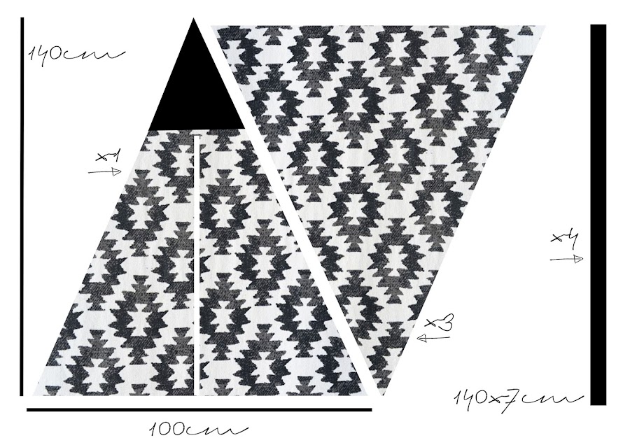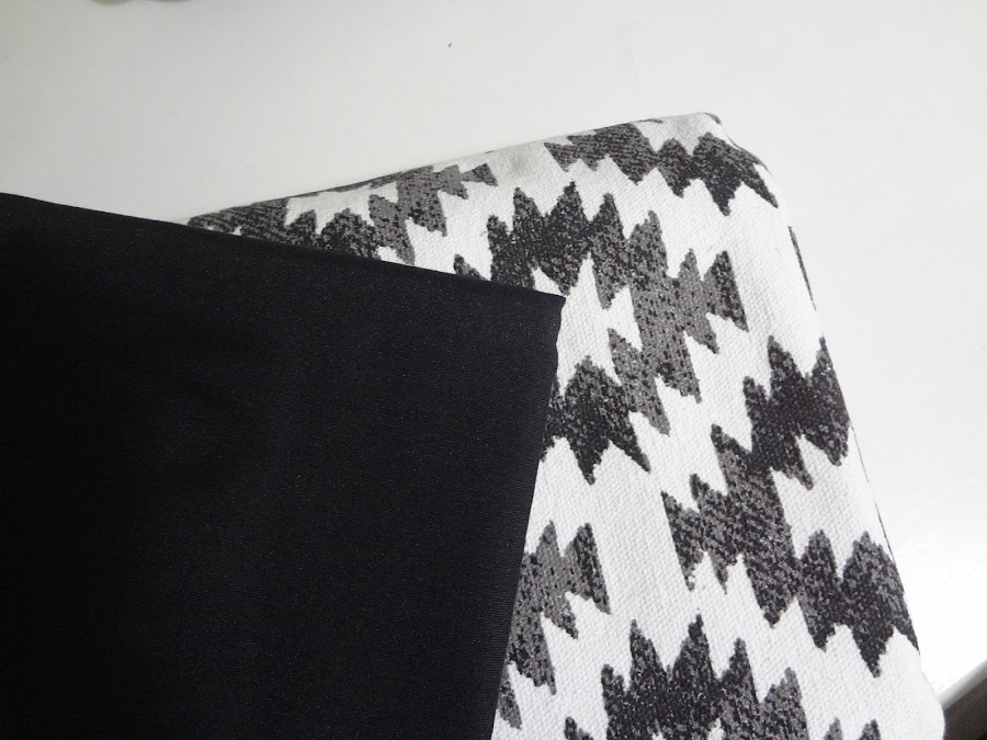 Mi elección de tela fue una loneta súper rígida con estampado étnico en blanco y negro, y otra tela lisa en color negro.