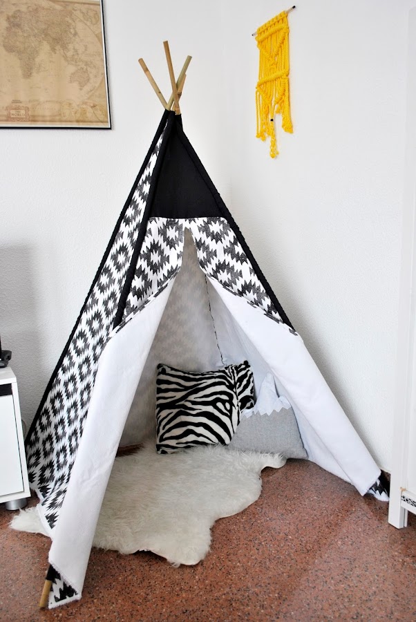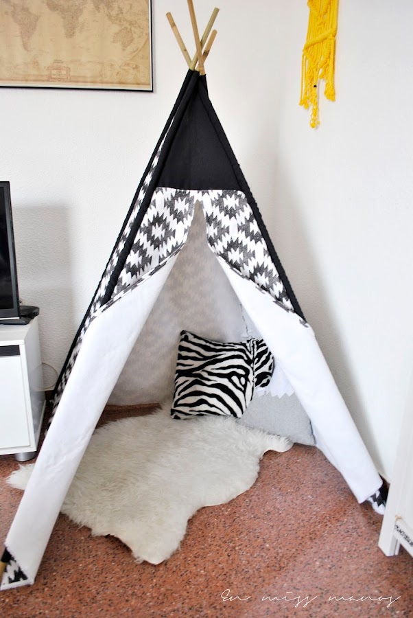 El diy de hoy quería hacerlo desde hace un año por lo menos, y entre unas cosas y otras al final lo fui aplazando, a parte de que lo veía difícil y me echaba para atrás, pero al fín, aquí está mi tipi o "teepee" indio!!