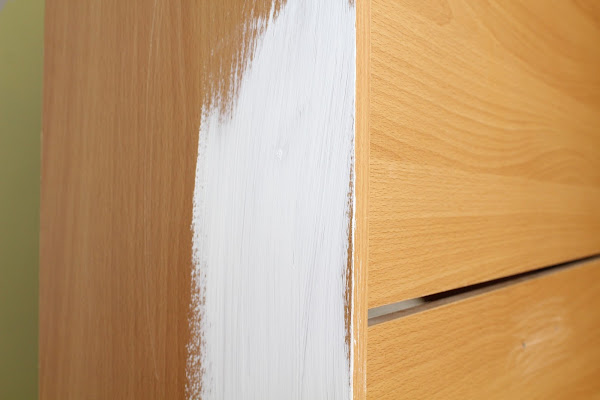 2 Paso: Pintaremos el contorno del mueble de blanco, he escogido la pintura chalk Paint de la Pajarita.