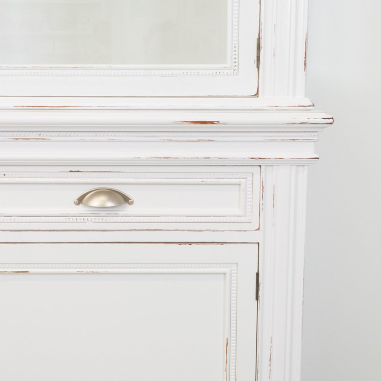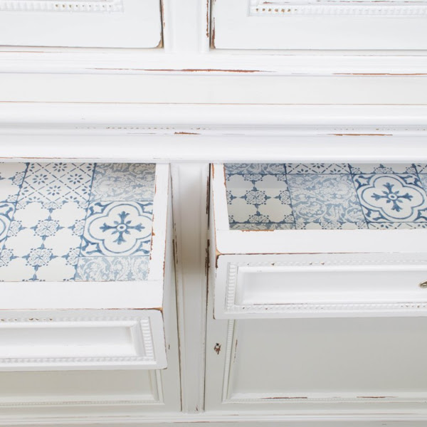 Como lo hemos explicado tantas veces, no nos parecía necesario que nos vieras con el pincel en la mano, que te digamos que le dimos 3 capas de blanco roto Valentine, que después le aplicamos un acabado decapé y que finalmente lo protegimos con barniz al agua satinado y colocamos papel pintado en el interior de los cajones... Lo mejor es que veas el resultado, quizás te sirva de inspiración!