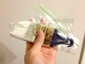 Si vamos a utilizar la brocha para dar una segunda mano o capa a lo que hemos pintado, y no queremos lavarla para evitar que el exceso de agua nos diluya la pintura, puedes guardarla dentro de una bolsa de plástico o una bolsa con autocierre y así no se secará.Utilizar una bolsa para que el pincel no se seque