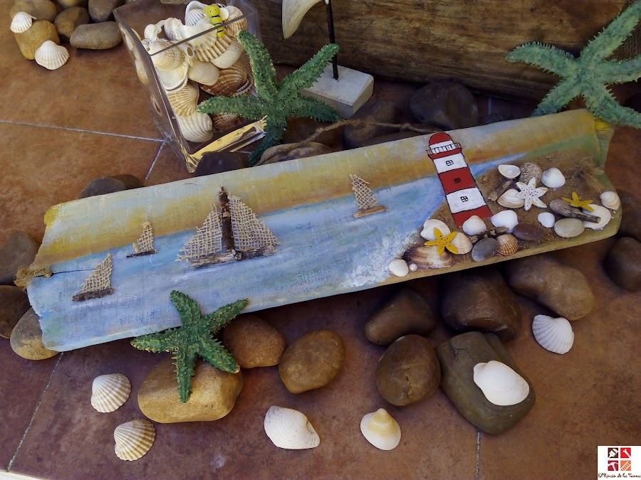 Que os parece mi cuadro veraniego de decoración coastal? tengo que deciros que mi padre sigue sin verlo, para él seguirá siendo una vieja tabla cuarteada para quemar, aunque me dice que me ha quedado muy chulo jaja