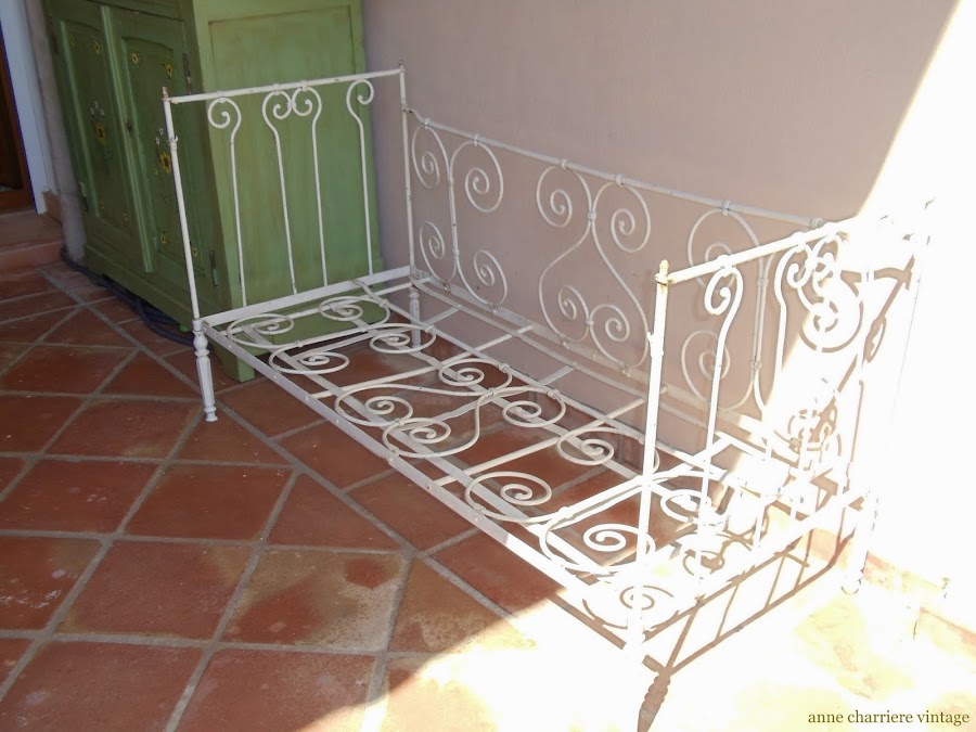 Rescued from my mother"s place I brought my own cot for an outdoor deco project.