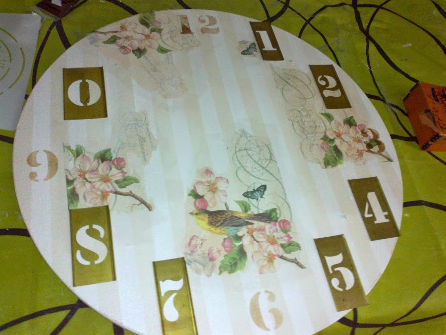 Le he pintado unas rayas de dos tonos,he conseguido sacar con tinte y blanco el mismo tono de la servilleta,para que se funda mejor y se note menos,a ver que os parece.