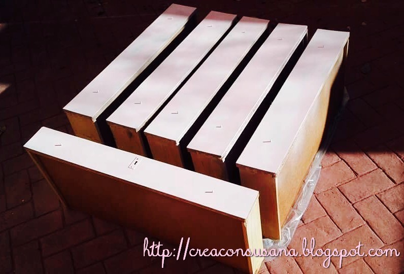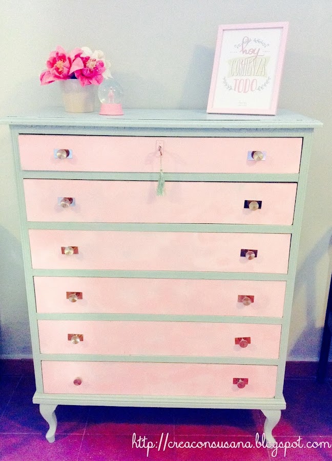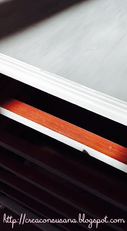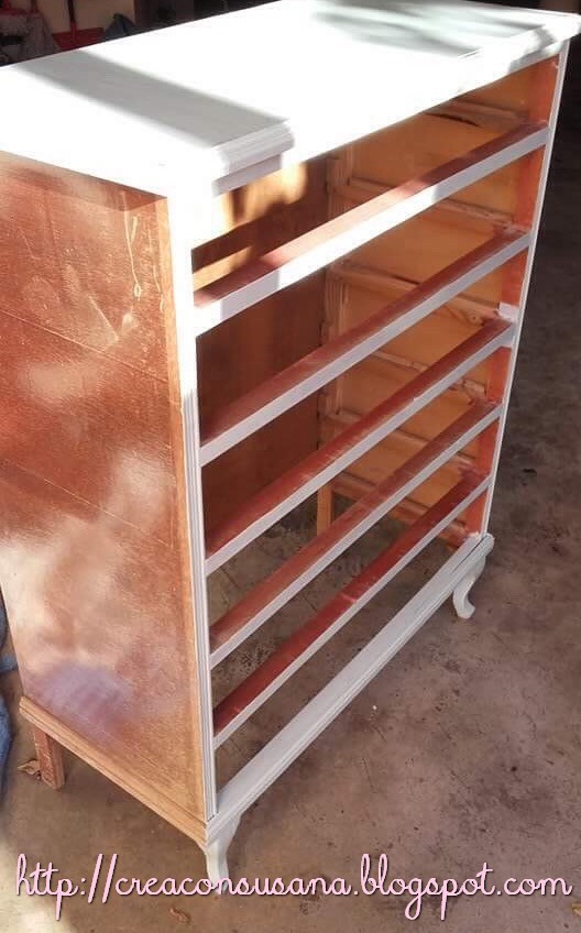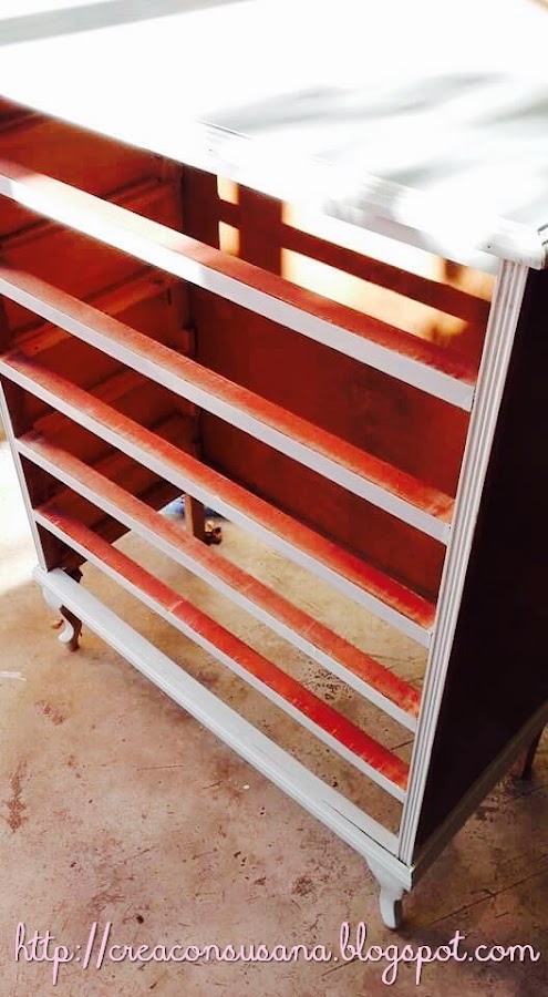 Por un lado, pinté los cajones y por otro la estructura de la cómoda, no se trataba de madera maciza, sino de madera de aglomerado y con una sólo una pasada quedaba bastante bien.
