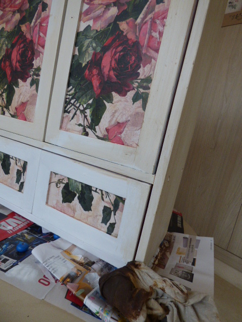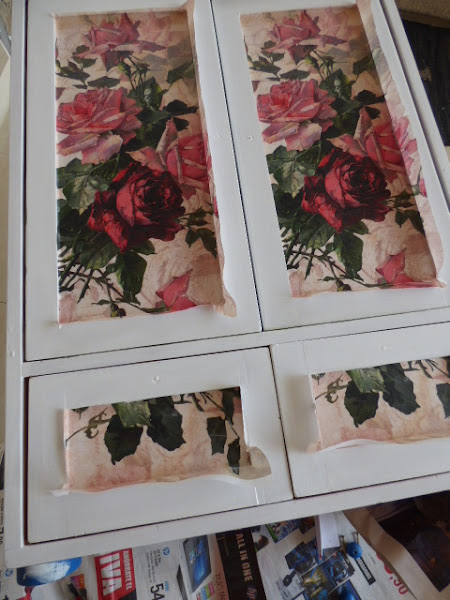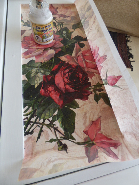 Con la cola de decoupage los he pegado, encajados en el cuarterón. Más cola por encima y dejar secar completamente.