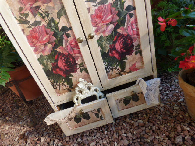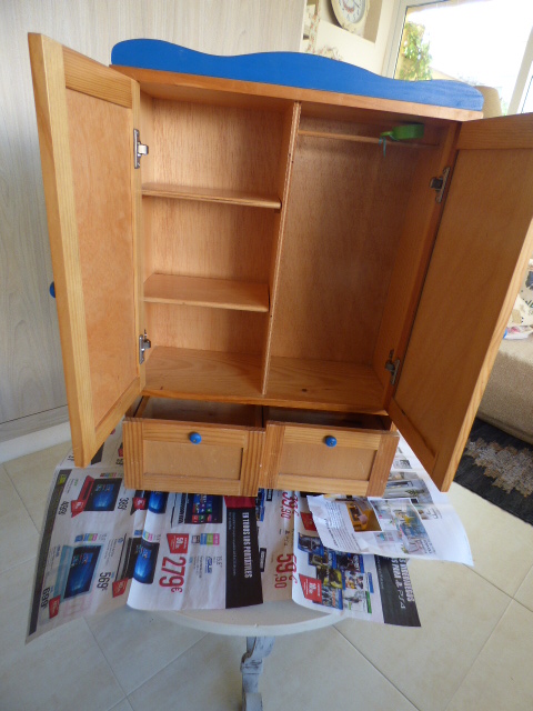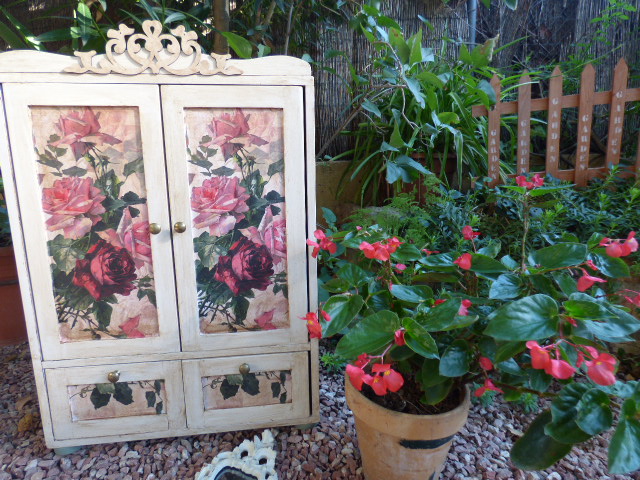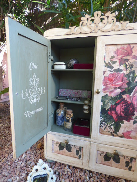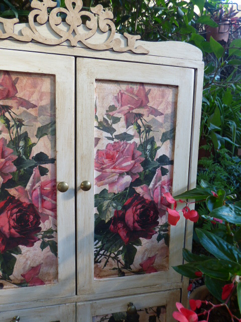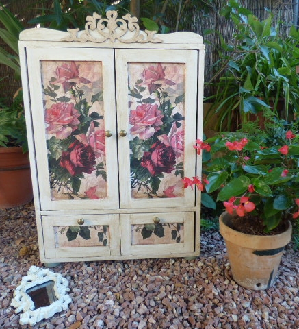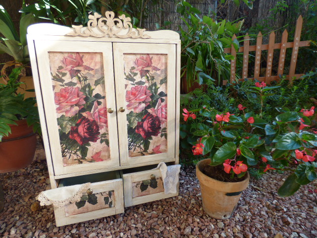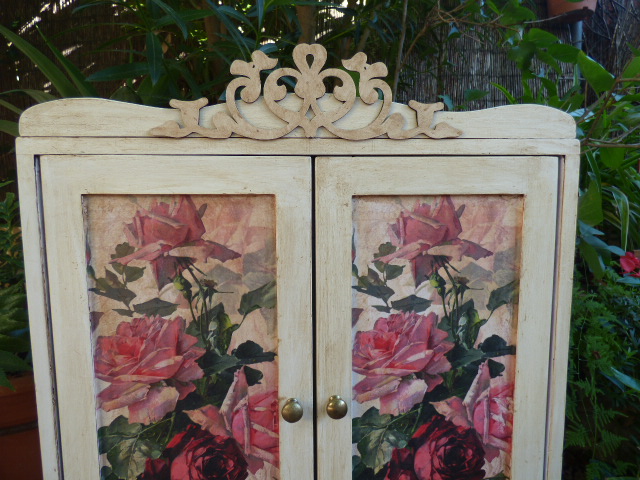 El armarito ya tiene una especie de pieza ondulada arriba, pero probé a poner encima este copete y le iba de maravilla. En este caso el copete mide 30cm de ancho. Se pueden hacer de la medida que os interesen, sólo tenéis que consultar medida y precio en ese tamaño en concreto.