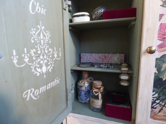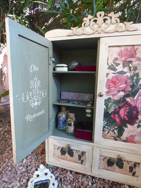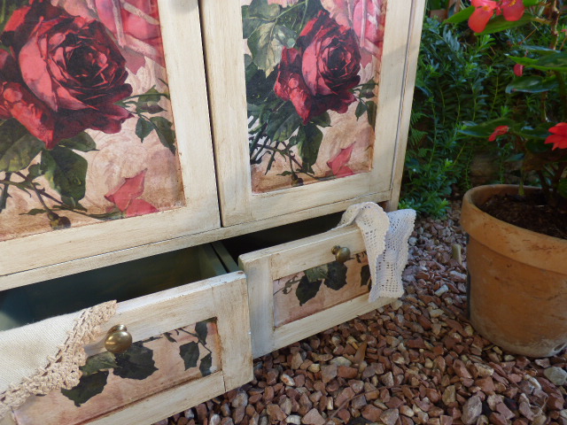 Vá pintado de blanco y luego envejecido con cera como el resto del armario