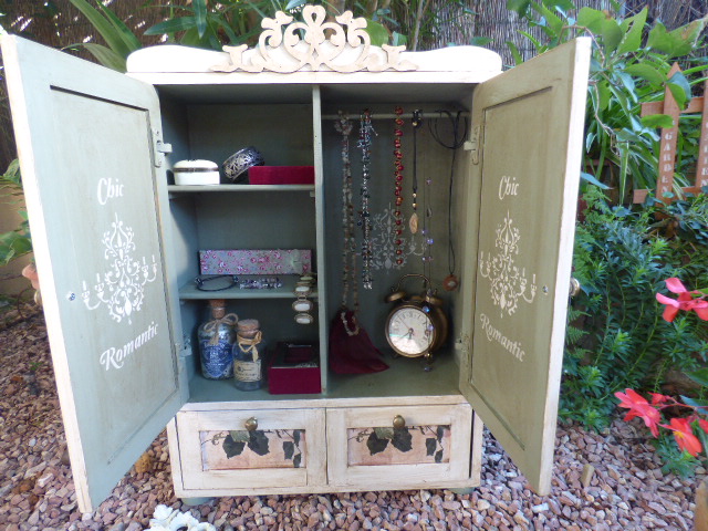 Me vá a ser muy útil porque con la de cuelga collares que hice hace un tiempo con las cajas de vino, no llegué a quedarme ninguno para mí y tengo las cosas de bisutería y demás, en una caja todo amontonado. Aquí caben un montón de cosas¡ Ahora falta que el armarito este quepa en mi habitación jaja tarea dificil encontrarle hueco.