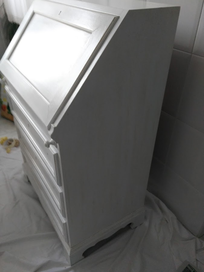 El primer paso fué darle una mano de imprimación para, una vez seca , darle una mano de laca blanca.