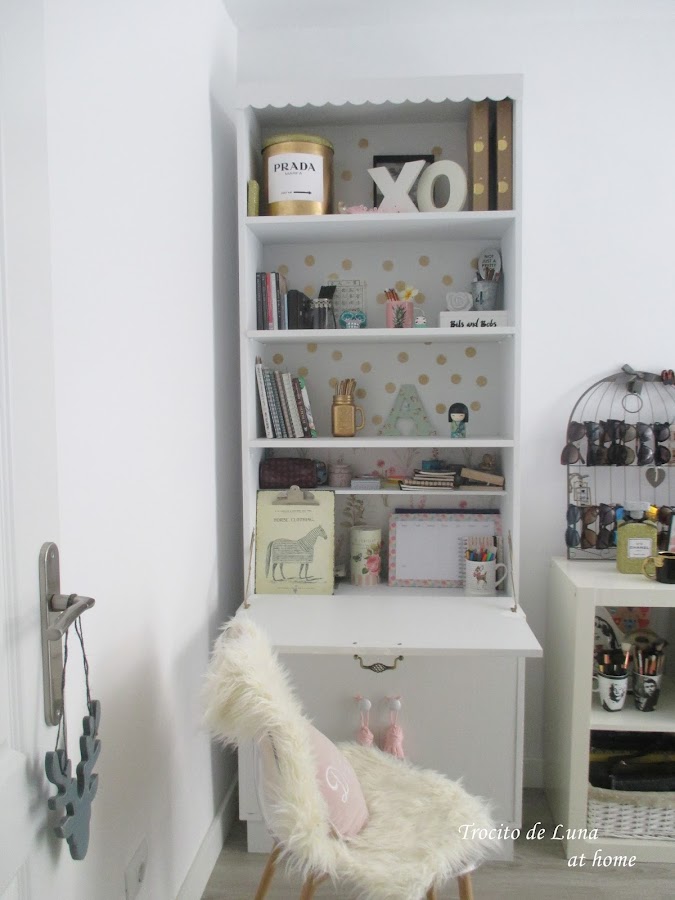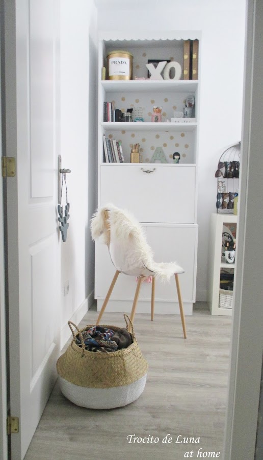 Adri, muy lista ella, se apropió de una habitación de muy buenas dimensiones para su closet, tanto es así que decidió integrar su escritorio compartiendo espacio y dejar así más espacio libre en el salón que es donde iba a ir en un principio, con otro look muy diferente.