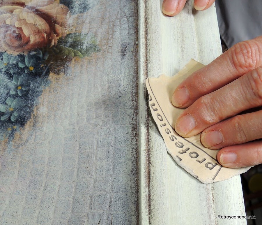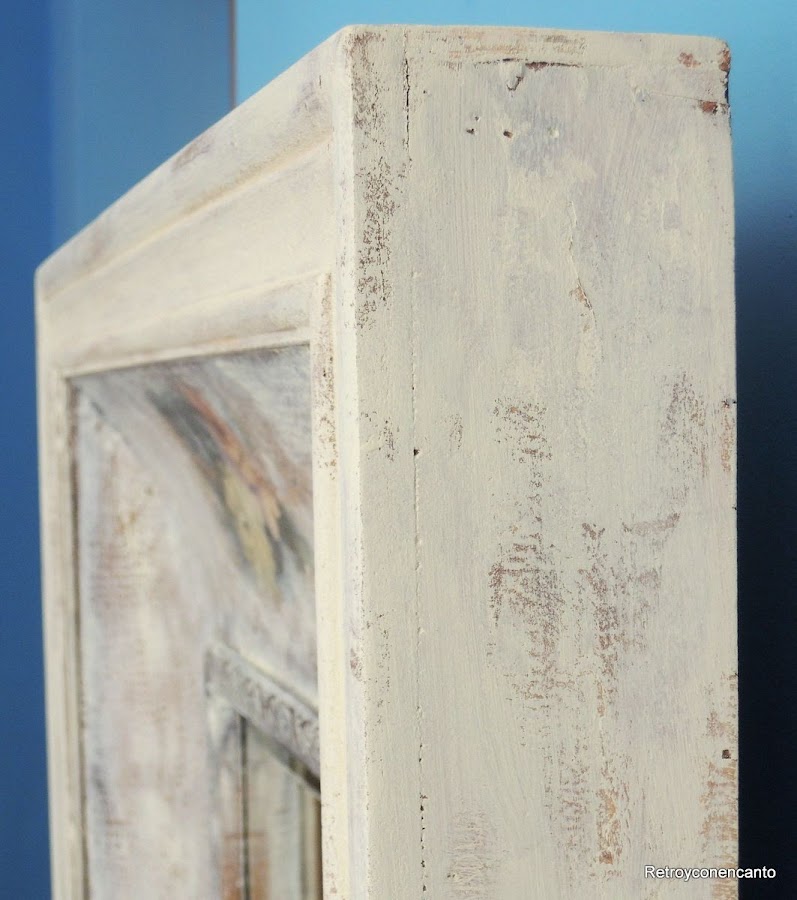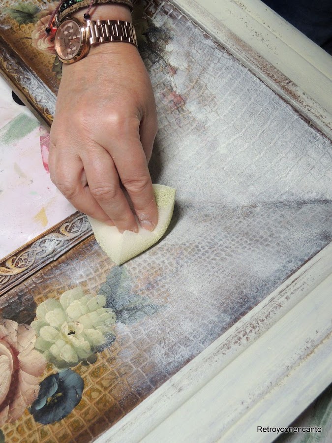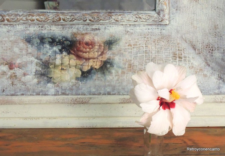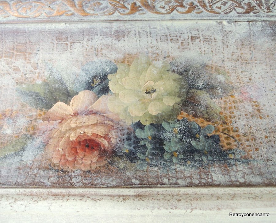 Aquí podéis ver con mas detalle el marco, y el craquelado y las flores que lo adornan.