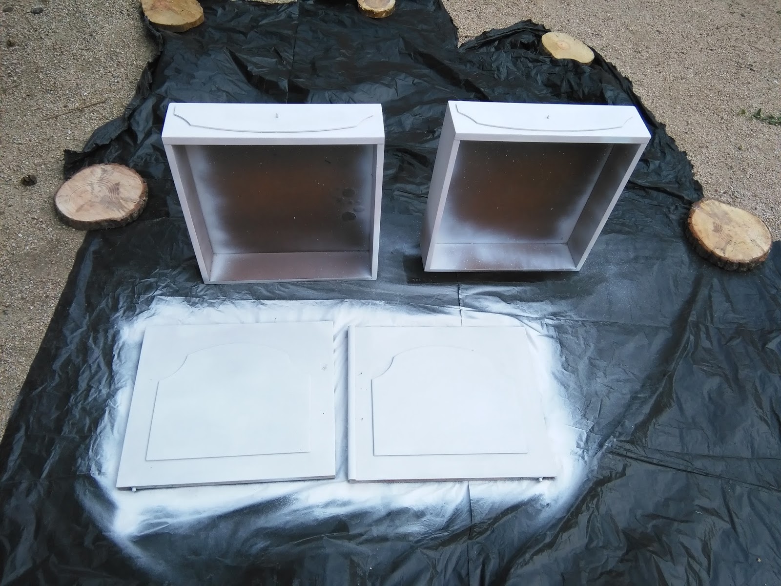 Después del lijado y de limpiar el polvo con un trapo húmedo, aplique la pintura a la tiza en spray en los cajones y puertas y seguidamente al resto del mueble. Era "mi primera vez" con los sprays, aplique un par de capas, y no me termino de quedar bien, simplemente no se utilizarlos correctamente, así que al final tuve que tirar de brocha (solo en la estructura, los cajones y puertas quedaron bien)