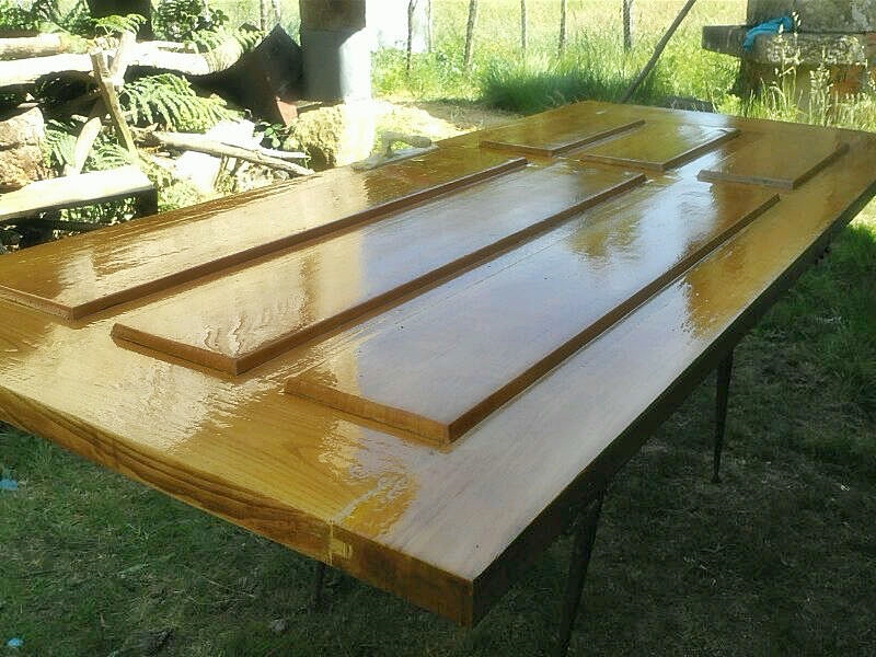 Bueno aplique dos manos de barniz, lógicamente lije antes y entre ellas, y bueno el acabado es este, no era el sitio ideal para barnizar pero bueno, con cuidado todo quedo bien.