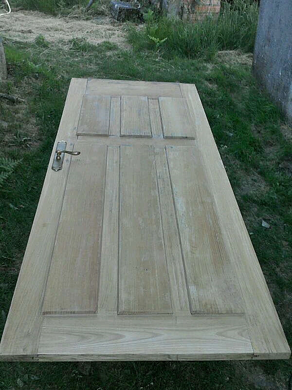 Bueno aquí ya la puerta raspillada y lijada, ya tiene otra pinta la verdad, también repare desperfectos que tenia con masilla especial para madera de castaño.