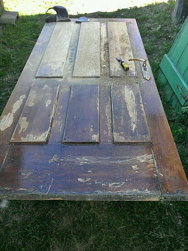 Bueno aquí ya la puerta raspillada y lijada, ya tiene otra pinta la verdad, también repare desperfectos que tenia con masilla especial para madera de castaño.