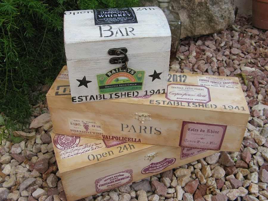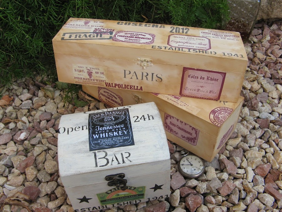Hoy os mostramos unas cajitas que nos ha encargado Miguel, un muy buen cliente que tenemos. Confía plenamente en nosotras por lo que nos ha encomendado hacer estas cajas para él meter dentro unas botellas para regalar. Tan solo nos dijo que llevaran motivos de vinos y licores.