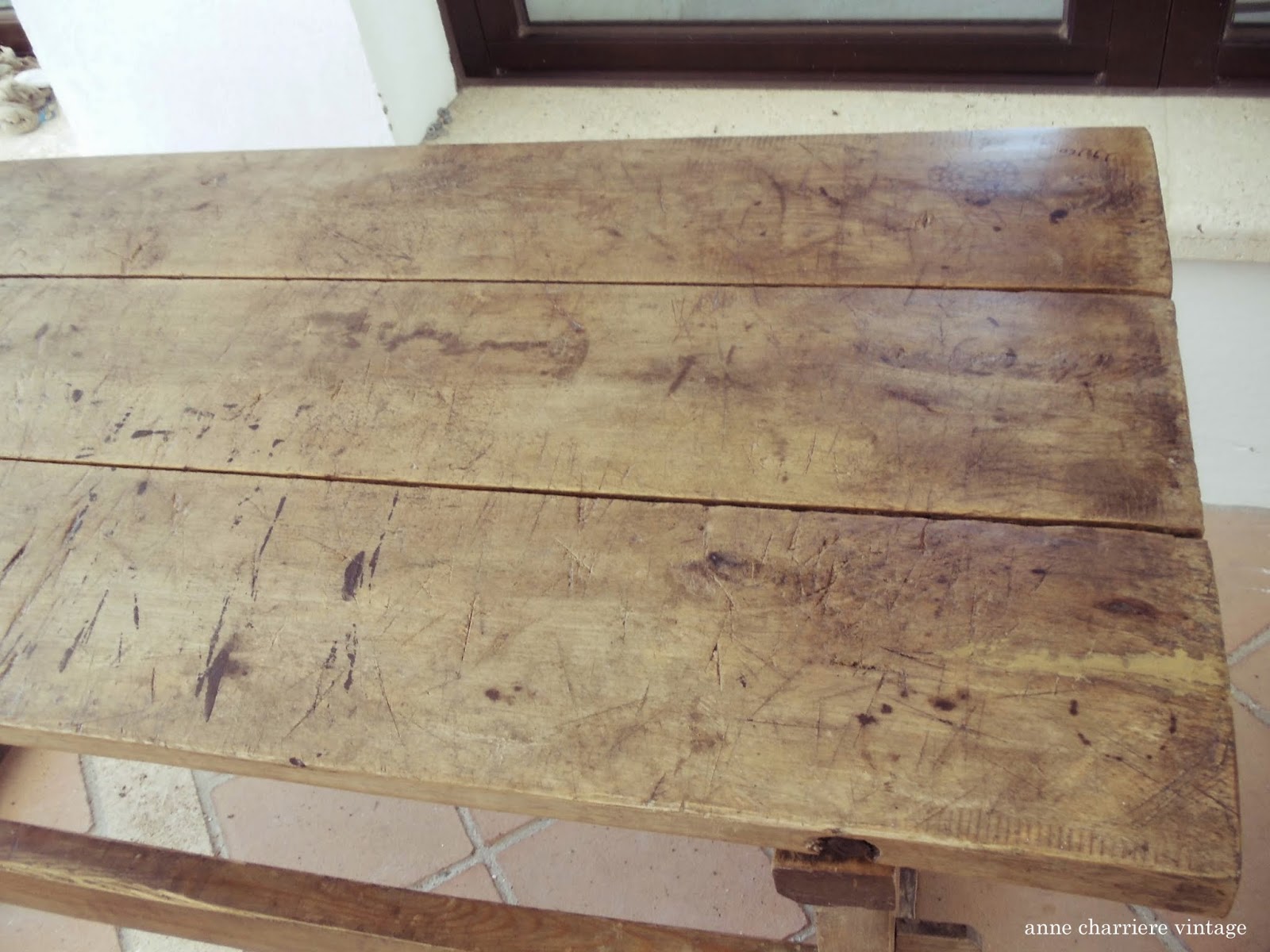 Este verano, me propuse limpiar y darle un poco de brillo a una mesa de campo muy antigua, muy bonita. No estaba en muy mal estado pero le hacía falta un buen repaso de limpieza, raspado y posterior encerado. Iba destinada a formar parte de la decoración de una tienda.