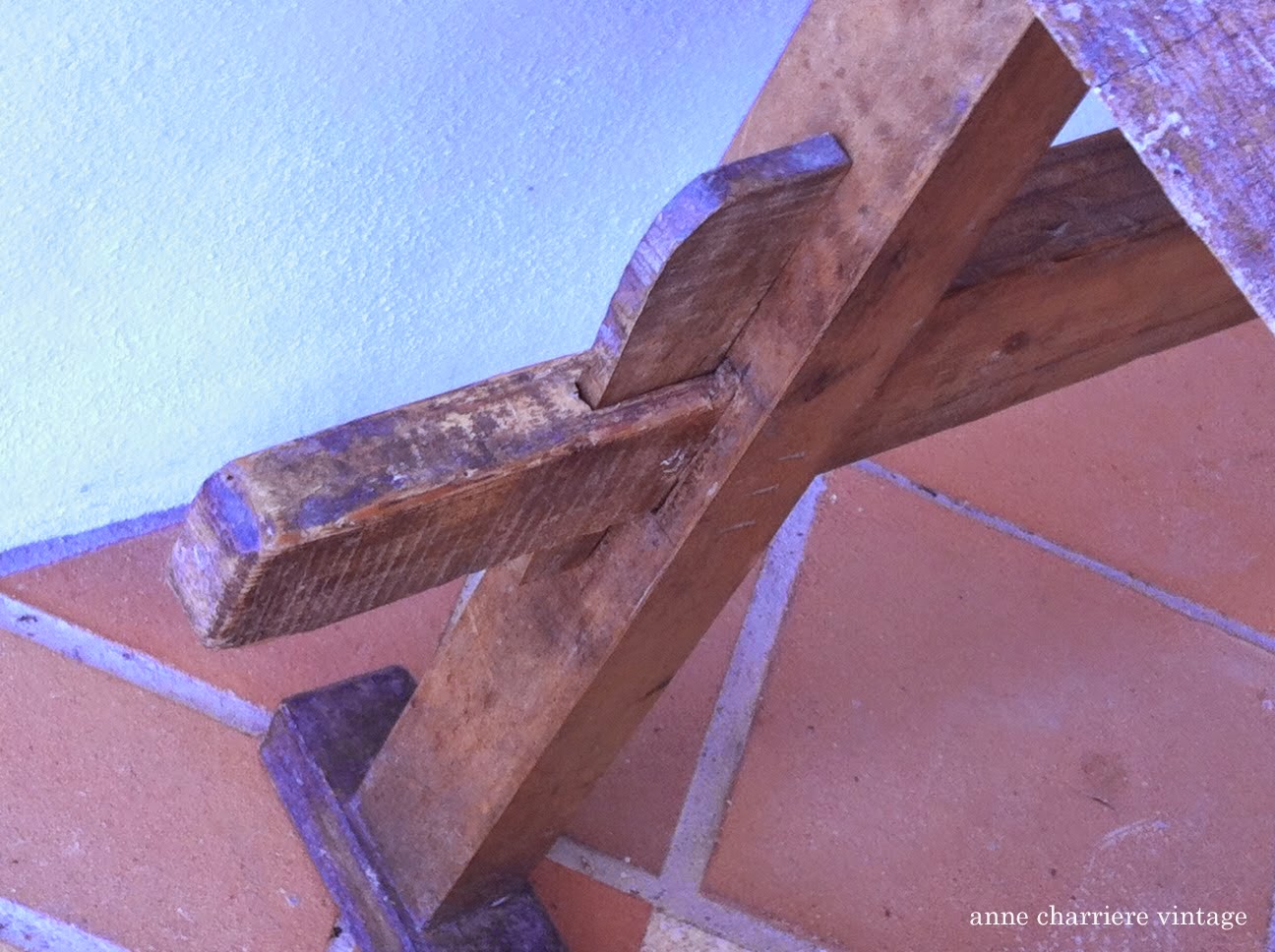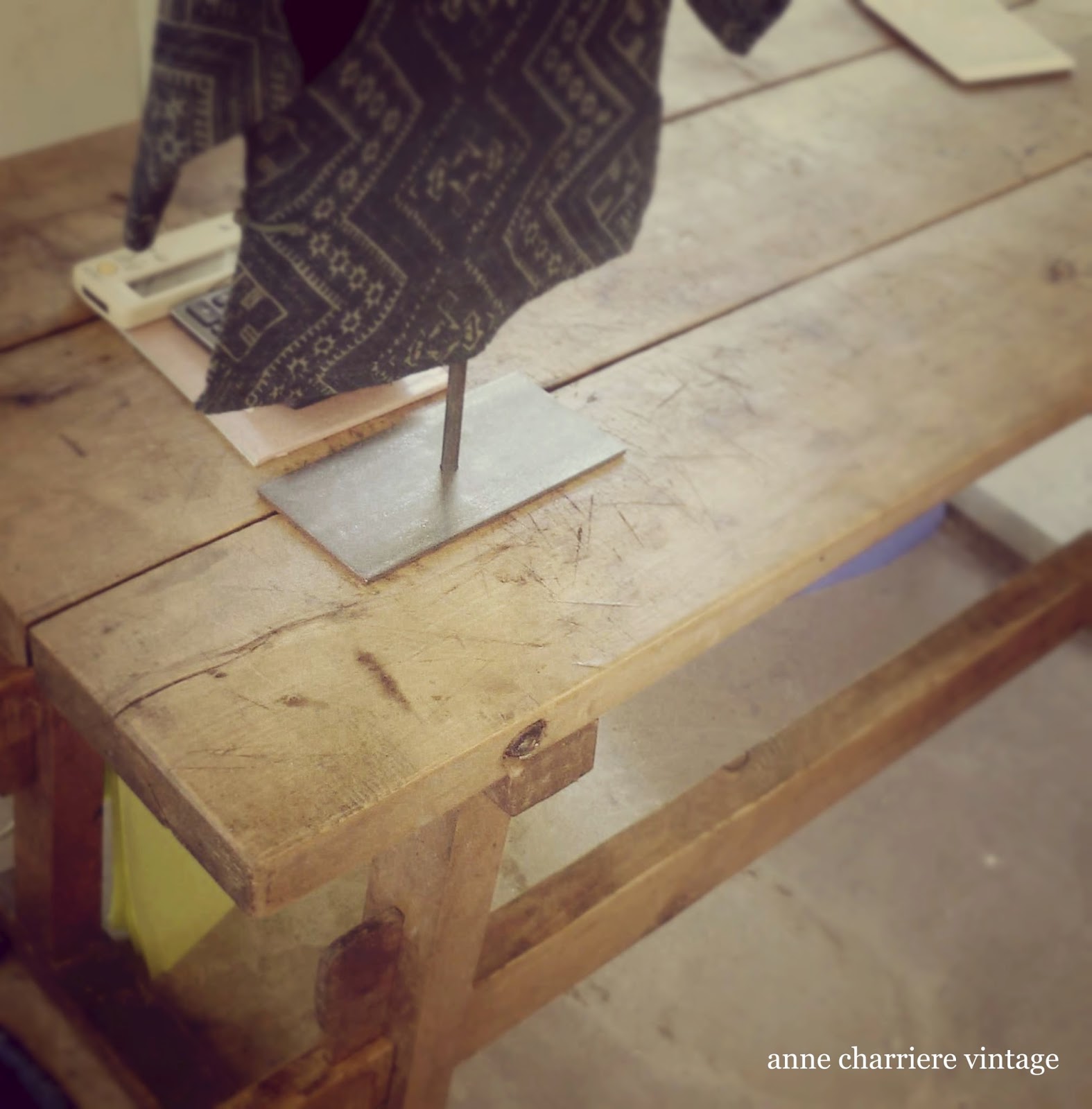 En cuando a la mesa: tras una labor de limpieza, sobretodo entre los tablones, la traté contra la carcoma y luego tapé los agujeritos con masilla. Una vez lijada, utilizé la cera incolora Les Antiquaires y con la pistola de calor, terminé el proceso de encerado. Ahora forma parte de la decoración de una tienda de ropa veraniega, bisutería y artículos de moda de mucha calidad y cuyo gusto es exquisito. Una gran harmonía entre lo industrial del local y el estilo boho chic de los artículos.