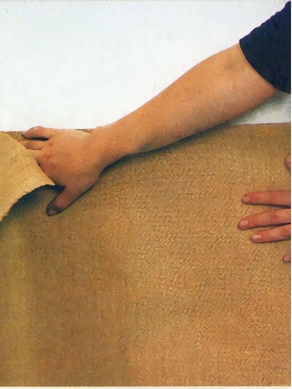 La arpillera es un tejido que se vende en forma de rollos, como el papel pintado, pero con una base de papel más grueso que facilita su colocación.