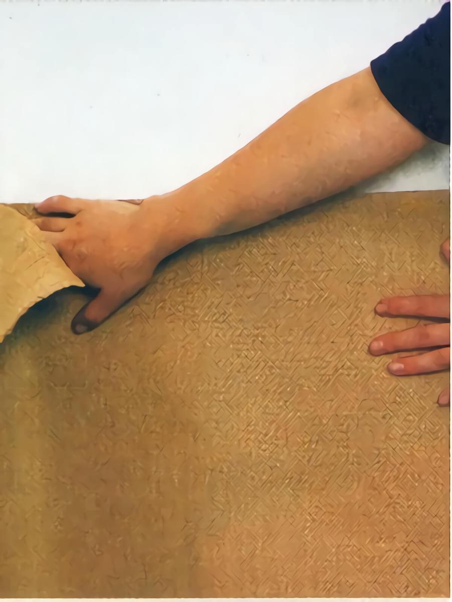 La arpillera es un tejido que se vende en forma de rollos, como el papel pintado, pero con una base de papel más grueso que facilita su colocación.La rafia tejida también esta sujeta a un papel base.