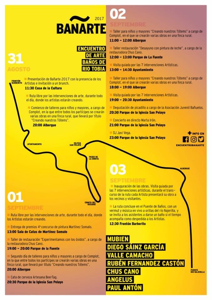 Encuentro Bañarte. Para empezar, asistimos a la II edición de Arte que se celebrará en Baños de Río Tobía del 31 de agosto al 3 de septiembre de 2017 Esta es la segunda edición de una propuesta novedosa. Seis artistas de diferentes disciplinas artísticas y llegados de distintos puntos de la península, trabajarán durante los días de encuentro.Además convivirán y explicarán en primera persona a los visitantes el desarrollo de su trabajo.