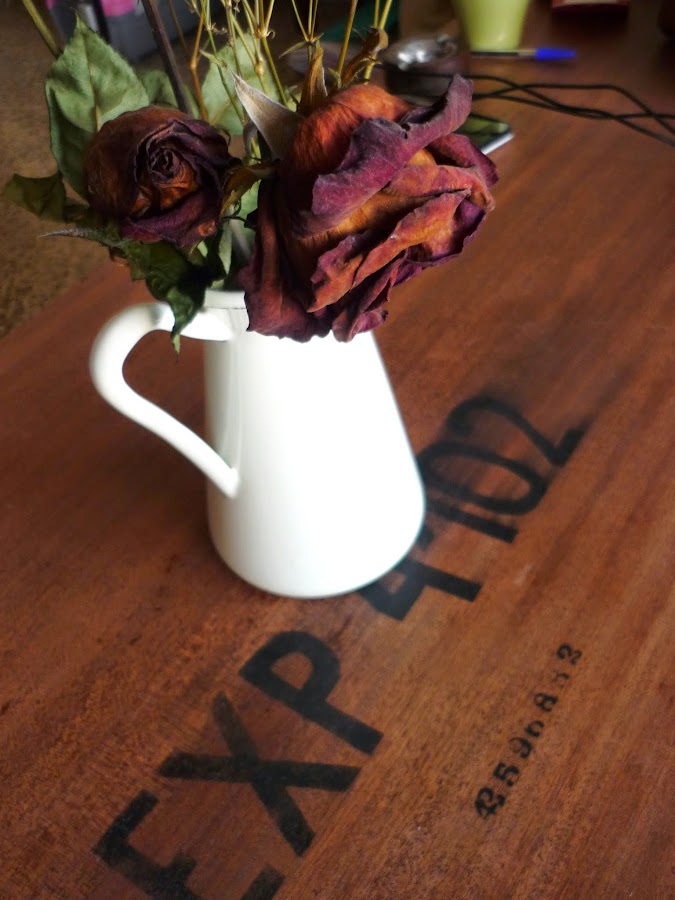 Pegamos a la pieza que queremos .Aquí esta echo en una tabla de contrachapado de una vieja mesa de café.