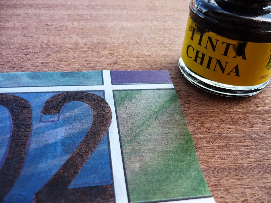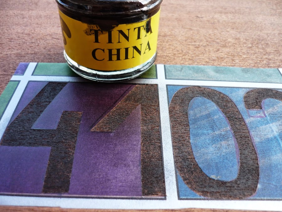 Un trozo de goma espuma mojamos en tinta china y escurrimos muy bien.