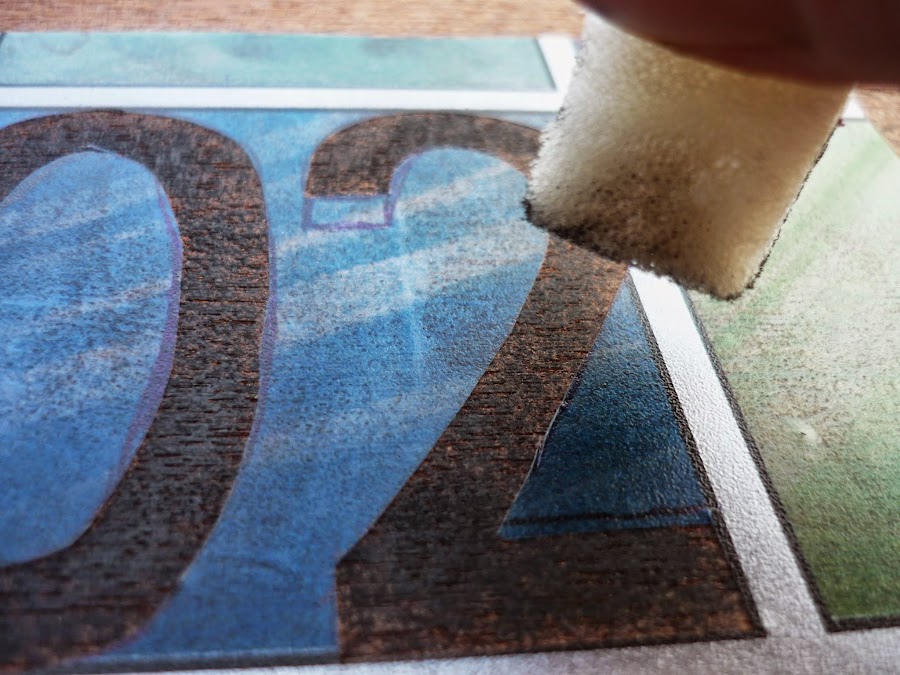 Cuando se seque, retiramos la plantilla. Dejamos por lo menos un día y cubrimos con el barniz acrilico mate o semi brillo.