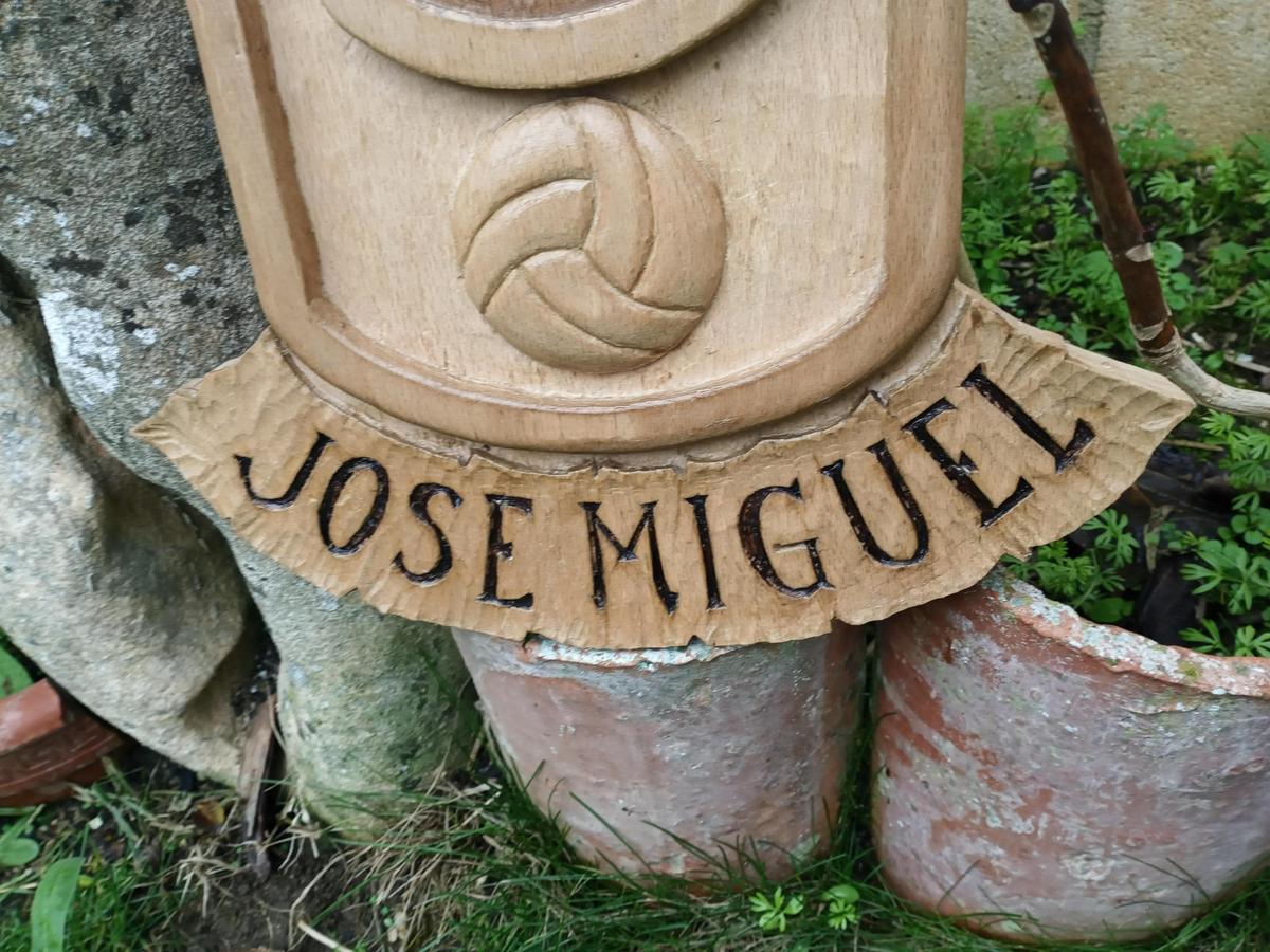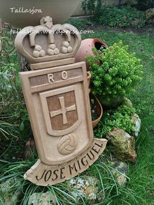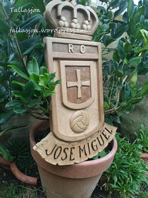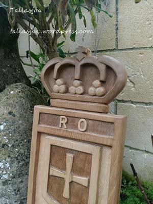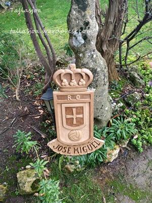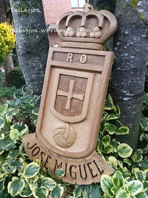 Está realizado en haya y personalizado con un papiro en la parte inferior con el nombre de la persona a la que está dedicado