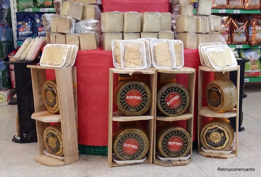 Fuimos directas hacia la encargada de charcutería del establecimiento, para pedir, suplicar..., una de estas queseras, o como buenamente se llamen estos soportes de madera. La muchacha, pelín antipática y poco colaborativa, se hizo bien de rogar, hasta el punto que vimos oscuro (negro, negrísimo) el conseguirlo. Dos meses después y, cuando ya lo dábamos por perdido, nos llamó para entregarnos éste.