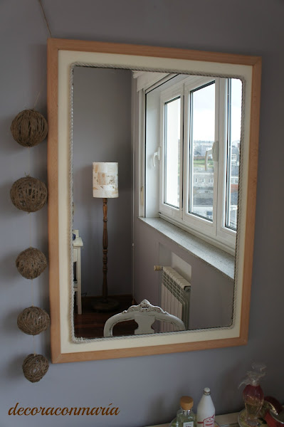 Hola!!, ya tenemos listo el espejo que os había prometido, puesto que el cambio ha sido mucho má sencillo que el de la pieza del tocador, he decidido incluirlo hoy en el finde frugal, a pesar de que su tiempo me ha llevado, se trata de algo sencillo que os paso a detalllar.