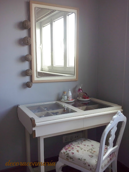 Y ya tenemos nuestro conjuntito listo y cumpliendo la función que deseaba, mi tocador de lineas rectas y que yo considero de estilo nórdico, no sé cómo lo veis.....