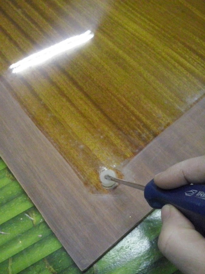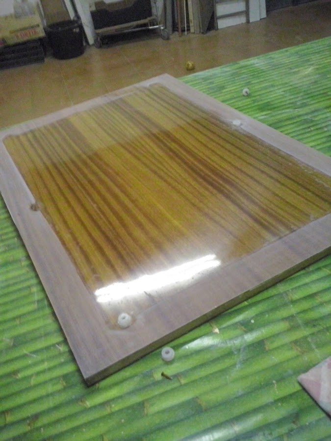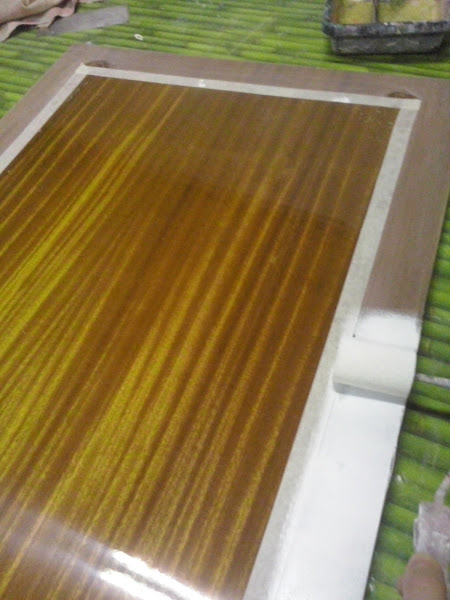 Colocamos la cinta y damos la selladora...varias manos, pues estos muebles tan oscuros lo requieren así,. sobre todo cuando vamos a esmaltar en tonos bien claros