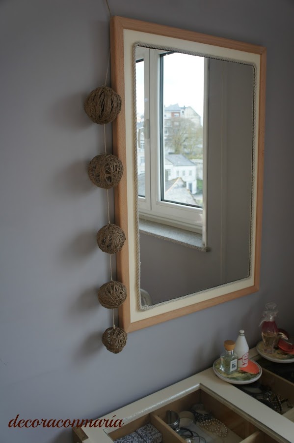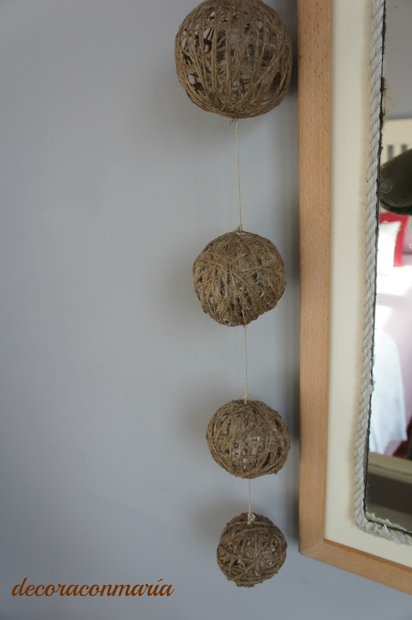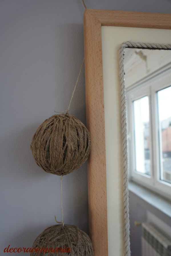 Le he puesto en uno de los laterales la guirnalda de cordoncillo rústico que yo misma he hecho y que os había enseñado en su momento en un post