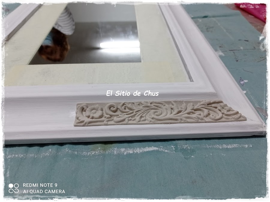 Desde el primer momento lo encontré muy soso tan liso, así que a base de este molde tan precioso le hice una moldura más acorde con lo que me gustaba.