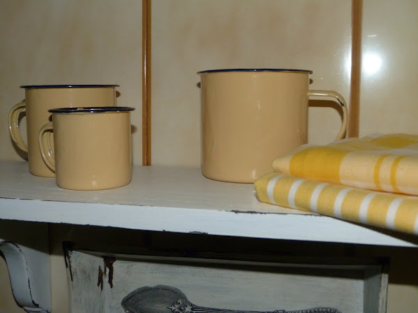 Ya sólo falta darle un toque personal, así que voy a probar con distintos "cachivaches". La cocina tiene muchos toques decorativos en color amarillo, detalles que os mostré aquí , así que empiezo siguiendo la misma gama con alguna pincelada blanca.