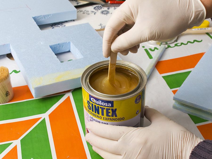 Muchos expertos belenistas utilizan cola de carpintero para ensamblar las paredes, pero nosotros hemos preferido el adhesivo específico de poliuretano que emplean los instaladores. El motivo de nuestra elección es que dicho pegamento tiene buen agarre inicial, al revés que la cola, de modo que podemos seguir trabajando sin esperar a que las uniones hayan secado. Y además facilita la construcción individual, sin ayudante.