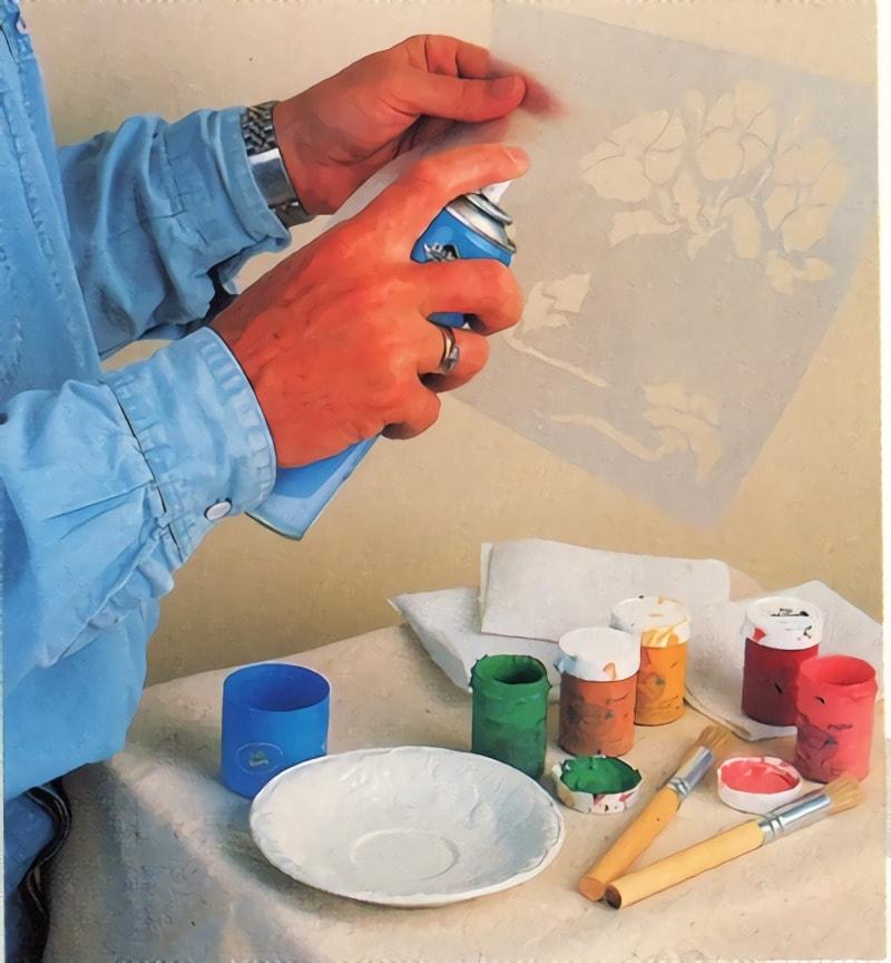 El primero es fijar bien las plantillas a la pared con cola en aerosol o con cinta de enmascarar.